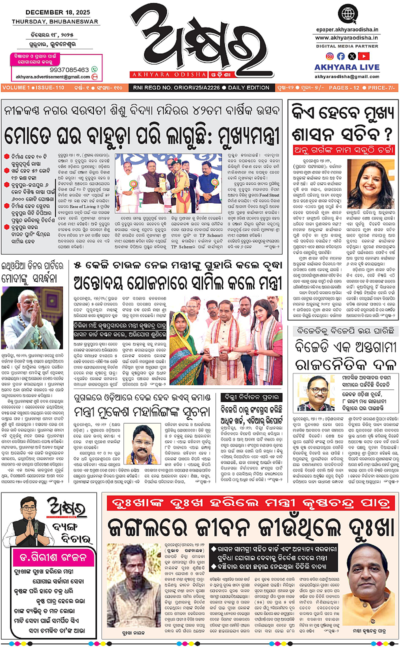 Akhyara Odisha 18/12/2025 December 18, 2025 Akhyara Odisha e-paper today 1 2 3 4 Page 1Page 2Page 3Page 4Page 5Page 6Page 7Page 8Page 9Page 10Page 11Page 12 × Akhyara Odisha 18/12/2025 Page-1-12-page-001Page-1-12-page-002Page-1-12-page-003Page-1-12-page-004Page-1-12-page-005Page-1-12-page-006Page-1-12-page-007Page-1-12-page-008Page-1-12-page-009Page-1-12-page-010Page-1-12-page-011Page-1-12-page-012 Download PDF File << First << 1 >> Last >> Page no 1Page no 2Page no 3Page no 4Page no 5Page no 6Page no 7Page no 8Page no 9Page no 10Page no 11Page no 12