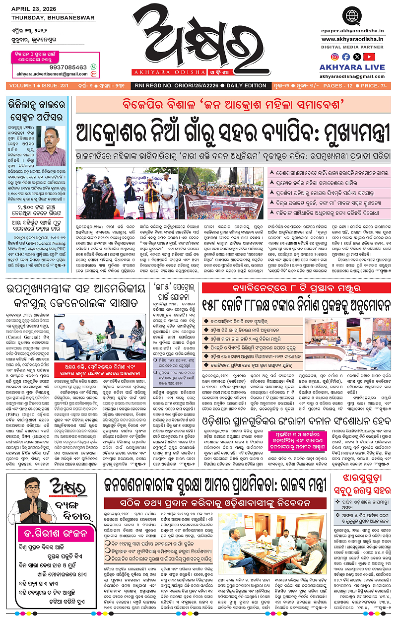 Akhyara Odisha 23/04/2026 April 23, 2026 Akhyara Odisha e-papaer today 1 2 3 4 Page 1Page 2Page 3Page 4Page 5Page 6Page 7Page 8Page 9Page 10Page 11Page 12 × Akhyara Odisha 23/04/2026 Akhyara_23.04.26-page-001Akhyara_23.04.26-page-002Akhyara_23.04.26-page-003Akhyara_23.04.26-page-004Akhyara_23.04.26-page-005Akhyara_23.04.26-page-006Akhyara_23.04.26-page-007Akhyara_23.04.26-page-008Akhyara_23.04.26-page-009Akhyara_23.04.26-page-010Akhyara_23.04.26-page-011Akhyara_23.04.26-page-012 Download PDF File << First << 1 >> Last >> Page no 1Page no 2Page no 3Page no 4Page no 5Page no 6Page no 7Page no 8Page no 9Page no 10Page no 11Page no 12