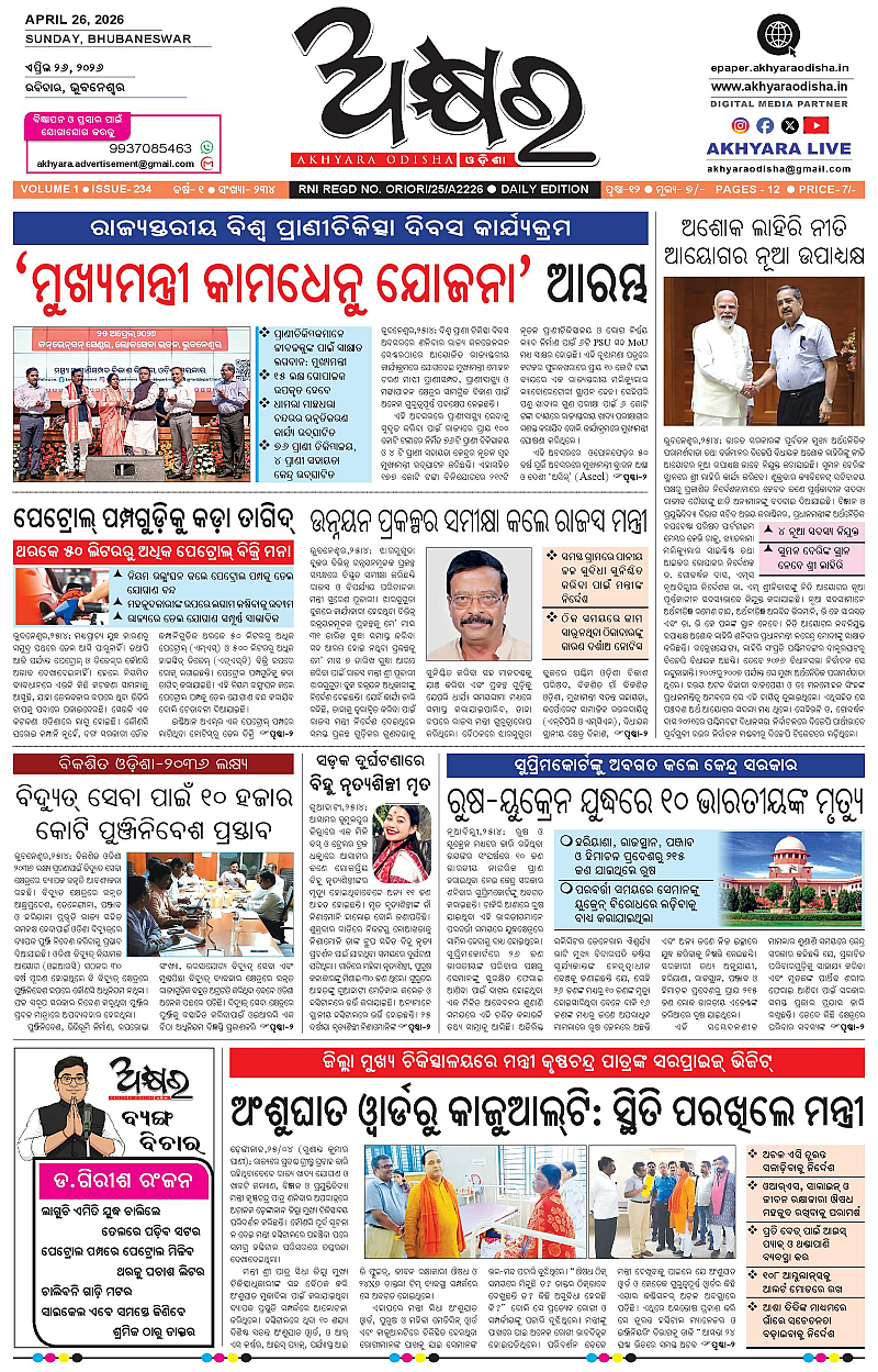 Akhyara Odisha26/04/2026 April 26, 2026 Akhyara Odisha Epaper Today 1 2 3 4 Page 1Page 2Page 3Page 4Page 5Page 6Page 7Page 8Page 9Page 10Page 11Page 12 × Akhyara Odisha26/04/2026 Akhyara_26.04.26-page-001Akhyara_26.04.26-page-002Akhyara_26.04.26-page-003Akhyara_26.04.26-page-004Akhyara_26.04.26-page-005Akhyara_26.04.26-page-006Akhyara_26.04.26-page-007Akhyara_26.04.26-page-008Akhyara_26.04.26-page-009Akhyara_26.04.26-page-010Akhyara_26.04.26-page-011Akhyara_26.04.26-page-012 Download PDF File << First << 1 >> Last >> Page no 1Page no 2Page no 3Page no 4Page no 5Page no 6Page no 7Page no 8Page no 9Page no 10Page no 11Page no 12
